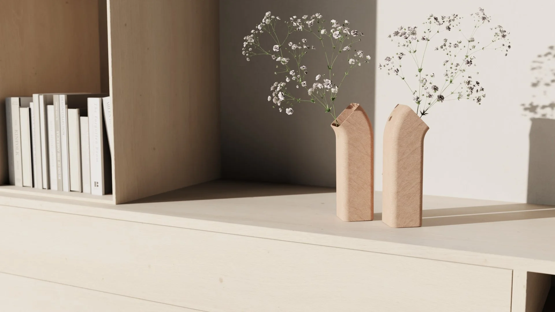 Made from recycled paper, bio-resin, and beeswax, it becomes a low-cost, biodegradable object that reimagines the quiet impermanence of the flowers it holds.